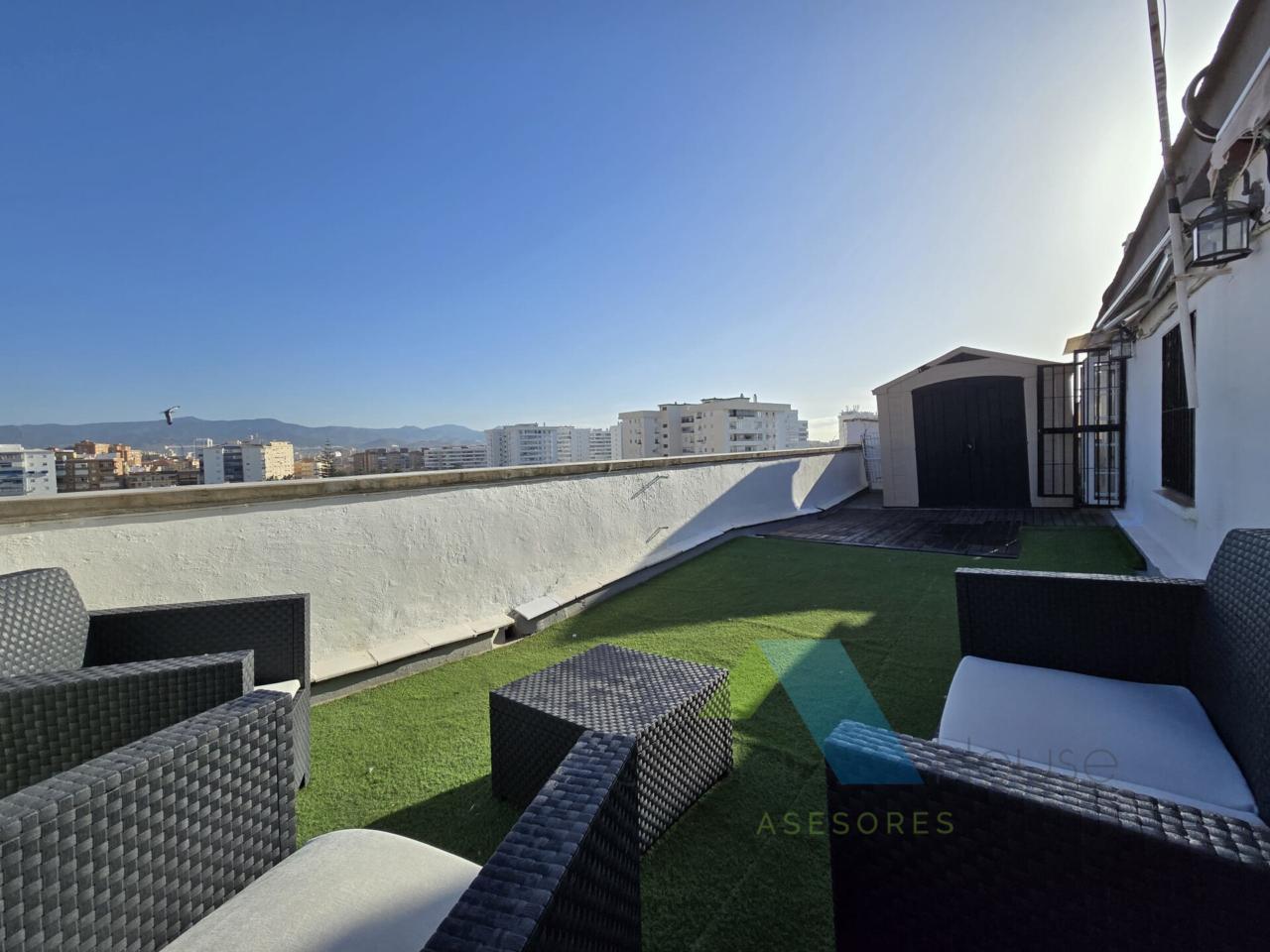Crystal House Asesores ofrece una vivienda muy especial, única en la barriada La Paz, con una terraza de 40 metros para el disfrute del maravilloso clima malagueño. Se trata del ático de un edificio, rodeado de todo tipo de comercios, a pocos minutos de Playa La Misericordia. HONORARIOS INCLUIDOS
